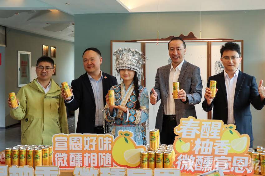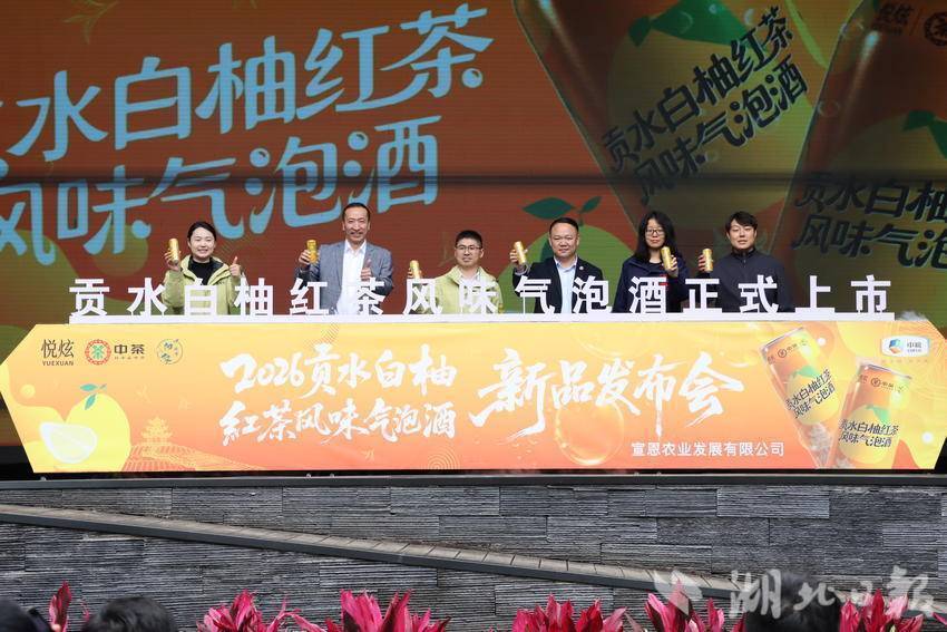 当茶叶、柚子、酒精三者相遇,会碰撞出怎样的火花?本次活动的新品发布环节告诉了答案,跨界特色饮品——贡水白柚红茶风味气泡酒惊艳亮相。产品精选本地贡水白柚与伍家台红茶为原料,融合果香与茶韵,罐身融入墨达楼、伍家台茶园等地域元素,成为承载宣恩文化的“移动名片”,既带来全新视听味觉体验,也推动宣恩茶产业向深加工、多元化方向延伸。活动现场同步推介了浪漫宣恩精品茶旅线路,进一步拓宽文旅消费场景。