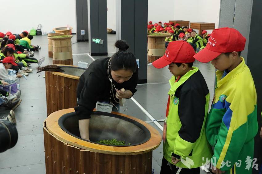 “在春暖花开、阳光明媚的时节来到茶园,不仅学会了采茶制茶,还了解了伍家台贡茶的历史传说和制作工艺,特别开心。”来到茶园研学的学生洪艺桐表示收获满满。