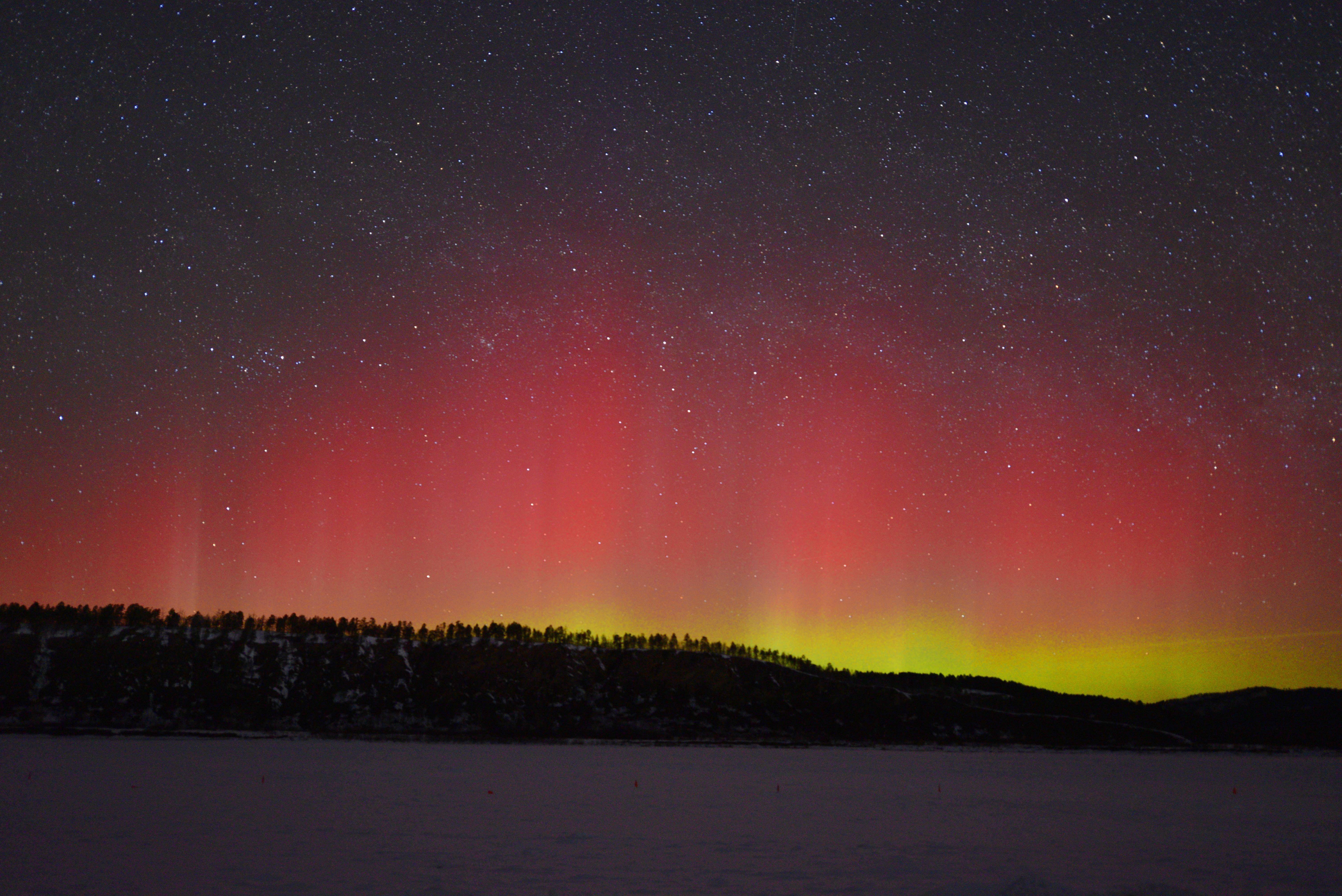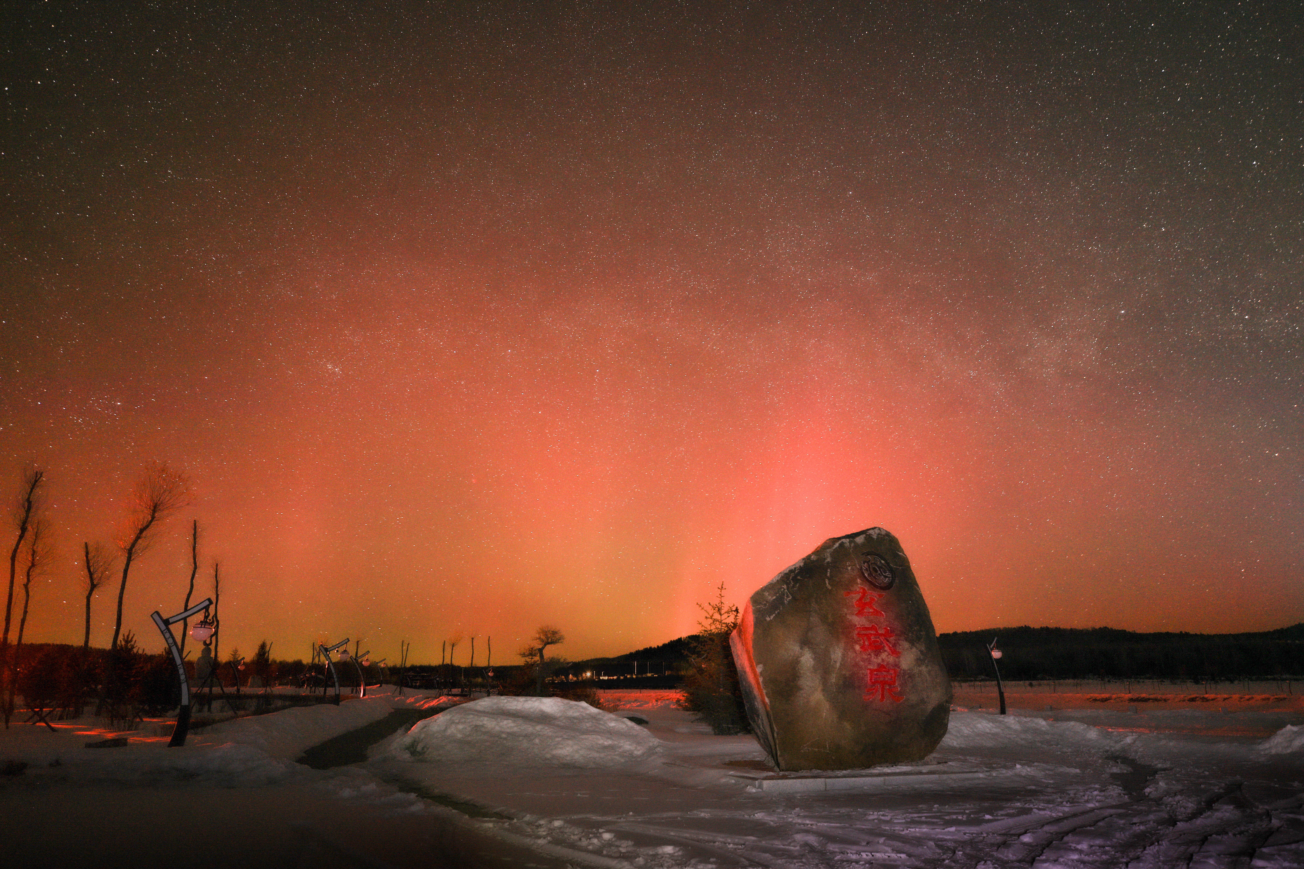 这是3月23日凌晨在黑龙江省漠河市北极村拍摄的绚丽极光。新华社发(郭昕宇摄)记者:王建威