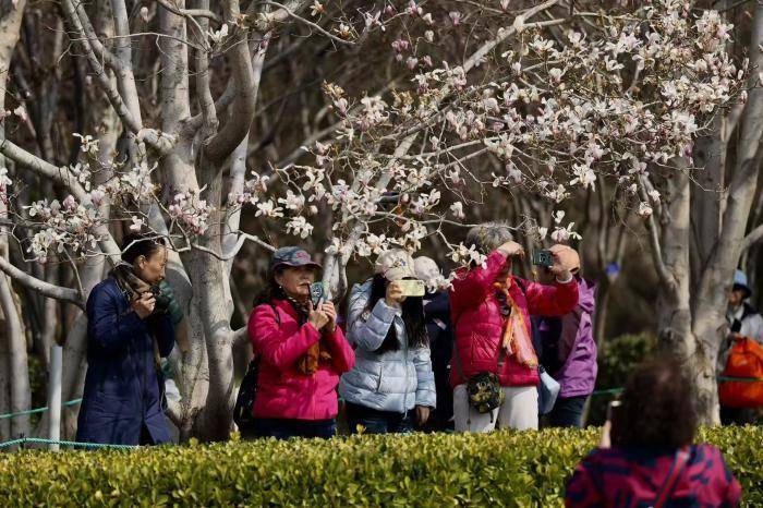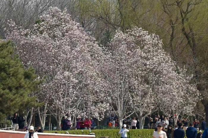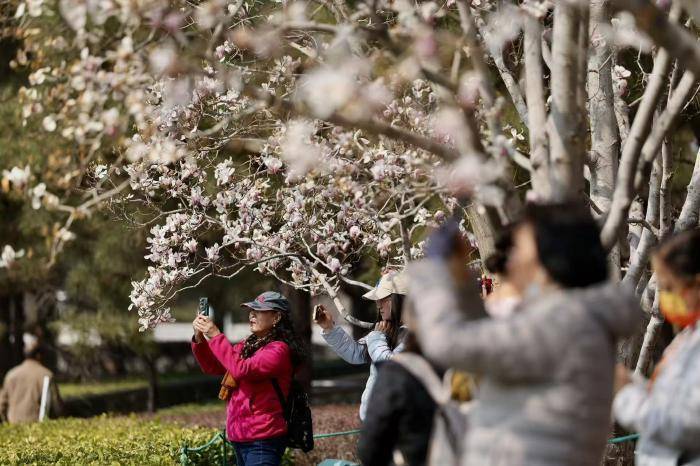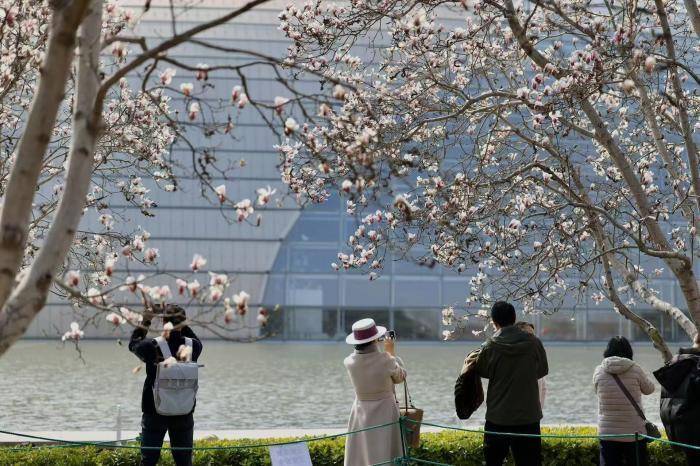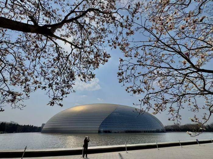 3月16日,北京国家大剧院东北角的望春玉兰已进入最佳观赏期,洁白繁花与剧院穹顶、水面相映成趣,成为长安街沿线的春日景观。